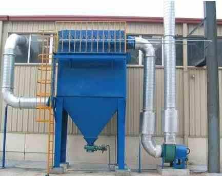 脈沖式/布袋除塵設備由灰斗、上箱體、中箱體、下箱體等部分組成,上、中、下箱體為分室結構。工作時,含塵氣體由進風道進入灰斗,粗塵粒直接落入灰斗底部,細塵粒隨氣流轉折向上進入中、下箱體,粉塵積附在濾袋外表面,過濾后的氣體進入上箱體至凈氣集合管-排風道,經(jīng)排風機排至大氣。