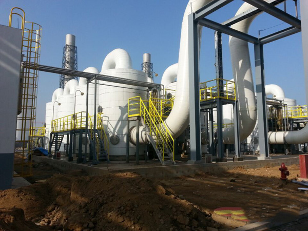 公司在生產(chǎn)加工的過(guò)程中,會(huì)產(chǎn)生大量的有機(jī)廢氣,其主要成分為:硫化氫、氮?dú)?、二氧化碳、氨、?duì)苯二酚、乙酸乙酯、甲醛、硝基苯、苯胺、氯苯、酸性物質(zhì)等,總風(fēng)量為:210000m³/h,而且廢氣還伴隨著惡臭氣味。